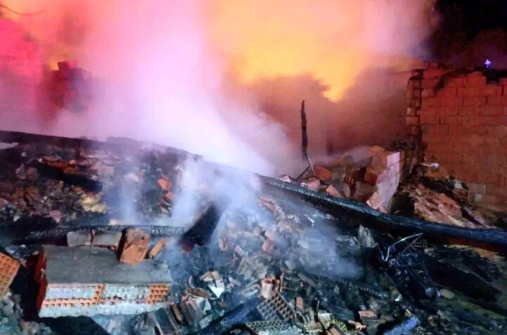 Çorum'un Alaca ilçesinde meydana gelen yangında bir ahır, tandırlık ve ardiyede bulunan 70 torba...