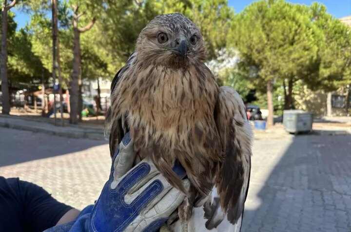 Sinop'ta yaralı halde bulunan kızıl şahin, Tabiat Muhafaza ve Ulusal Parklar takımlarına teslim edilerek...
