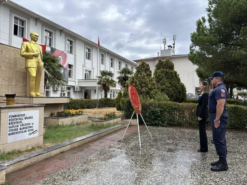 Gerze ilçesinde Hükümet Konağı önünde yapılan merasim, Kaymakam Yıldız Büyüker ve Belediye Başkanı Osman Belovacıklı’nın Atatürk Anıtı’na çelenk sunumuyla başladı.